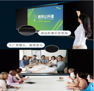 智慧黑板内嵌800w高清摄像头以及全向阵列麦,瞬间无缝,从教育系统切换到会议系统模式(选配);