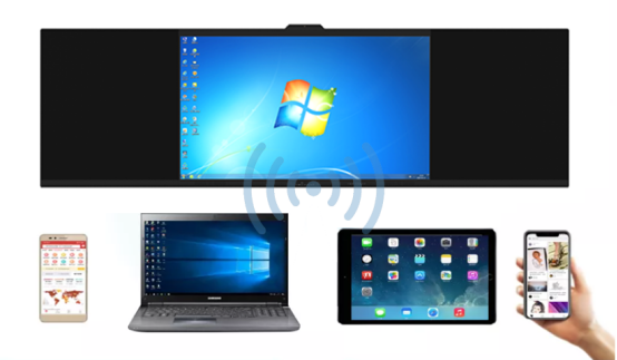 智慧黑板支持移动端设备无线传输功能,以无线投屏方式将电脑画面、移动设备端内容即时镜像分享到智慧黑板上,省掉用户布线投入成本和提高便利性,有效提升教学效率。支持安卓、IOS、windows多操作系统无线投屏教学;