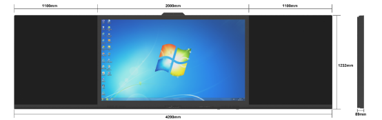 智慧黑板产品尺寸:4200mm*1232mm*89mm;符合《国家书写板安全卫生要求规定》(GB28231-2011)的相关要求;